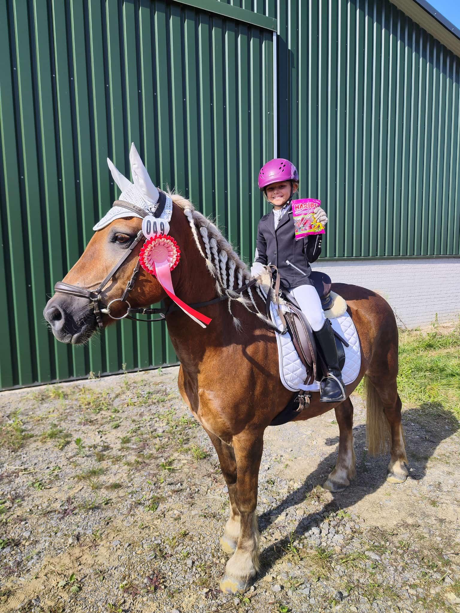 4ter Platz im Schritt-Trab-Galopp WB für Elaina Matas mit Jake sowie 3ter Platz Springreiter WB, WN 7,6 im Reitstall Schmitz in Kaarst.